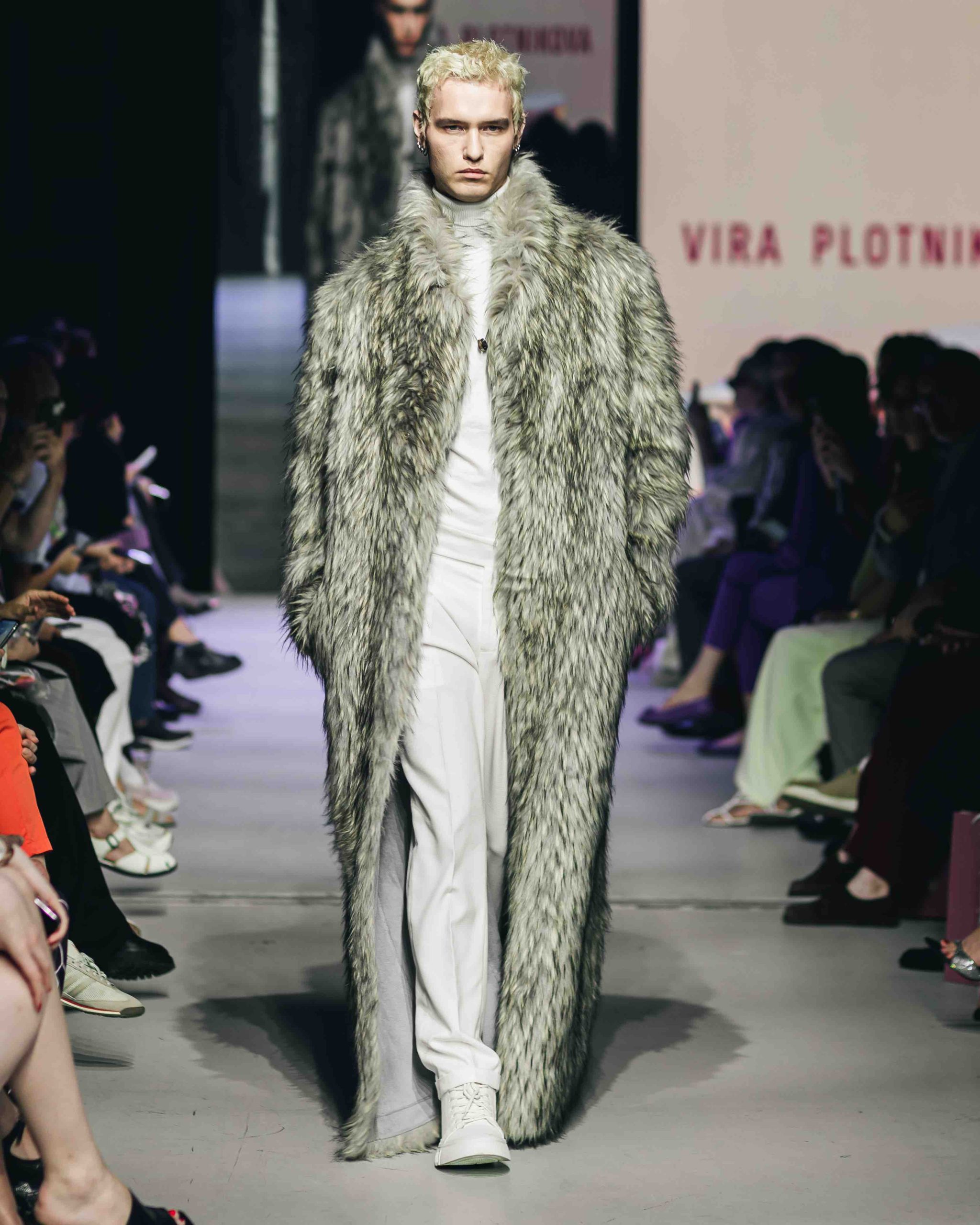 Коллекция «Diva» FW 25/26, представленная на Московской Неделе Моды, - это исследование возможностей шерстяного меха. Эффектные шубы в пол из искусственных перьев, строгие дубленки, богемные горжетки и манишки, воплощающие элегантные и романтичные силуэты. Цветовая палитра — от тонкой нейтральной классики до смелого самовыражения. От базового шика: утончённый беж, шоколад, стальной, белоснежный. До смелого выбора: экстравагантный леопард, нежный голубой, мятный, оливковый, гипнотический лиловый и лавандовый.
